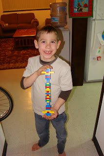 David likes to build what he calls patterns. So today he built a leggo tower that if you look at the middle the ends are reflections of eachother. Such a smartie!